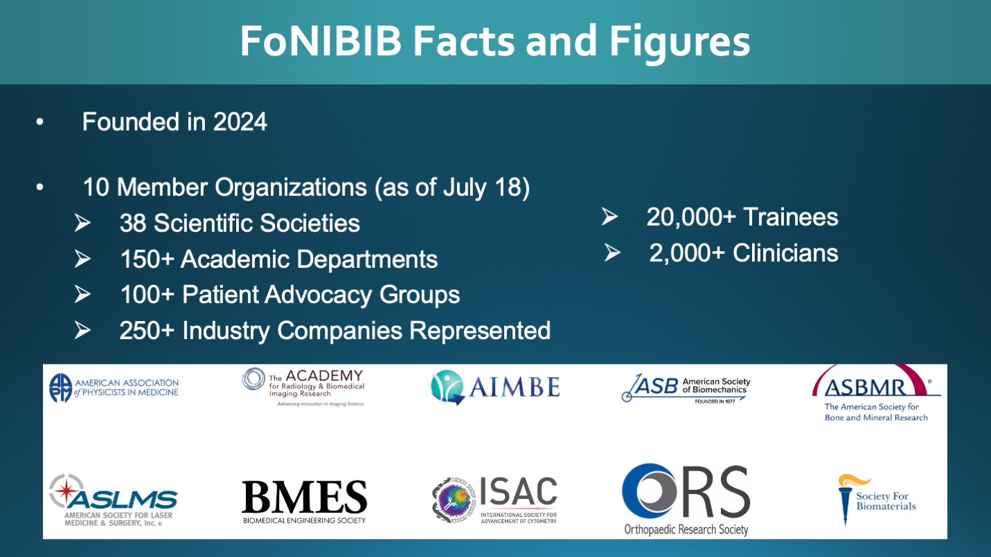 On July 18, 2025, our FoNIBIB coalition members met with NIBIB staff and leadership. This meeting provided a forum to discuss NIBIB funding opportunities, training grants, and strategic initiatives along with an overview of FoNIBIB objectives, planned activities, and avenues for future collaboration.